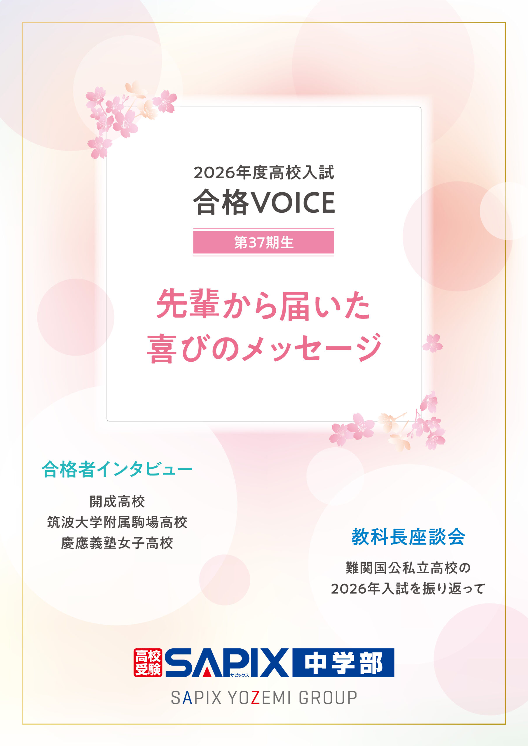 - 合格VOICE(合格者インタビュー・教科長座談会を収録)